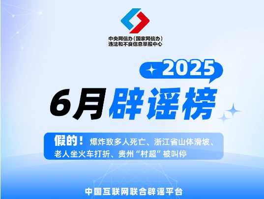 假的!爆炸致多人死亡、浙江省山体滑坡、老人坐火车打折、贵州“村超”被叫停 中国互联网联合辟谣平台2025年6月辟谣榜