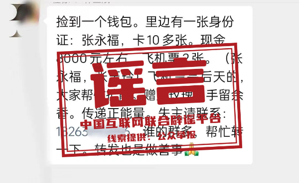 谣言:多地有人捡到钱包、接力转发“失物招领”信息?