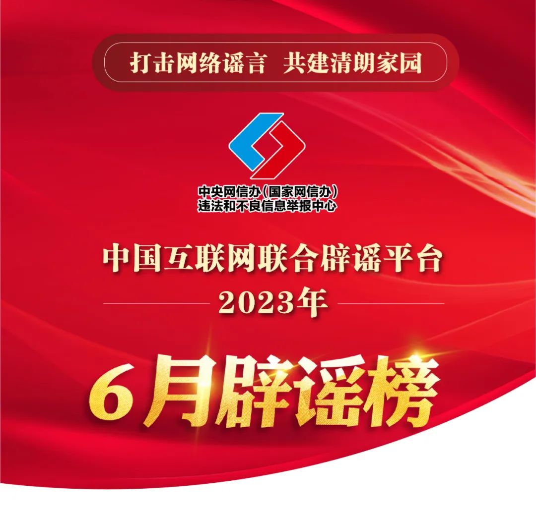 - 打击网络谣言 共建清朗家园 中国互联网联合辟谣平台2023年6月辟谣榜