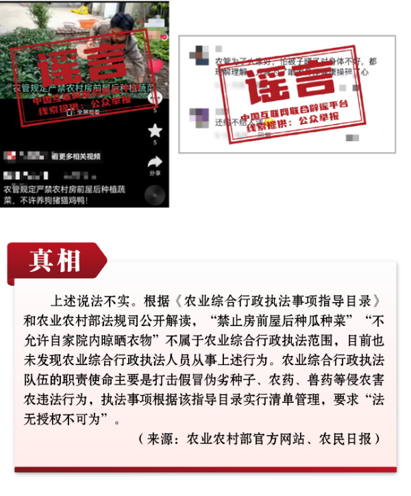谣言5:“农管”不让村民种瓜种菜、在自家院子晒被子?