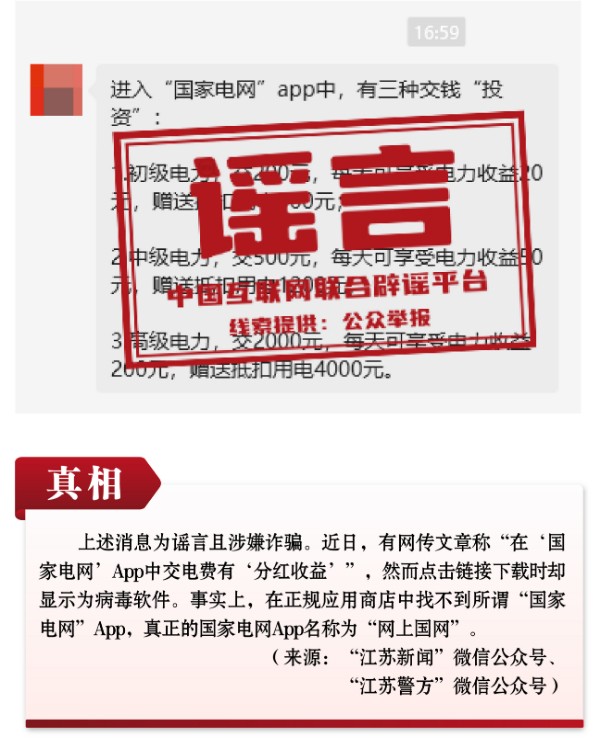 冒用官方名义,企图行骗牟利。7月,有关仿冒官方机构的网络举报量上升,涉及政府部门、大型国企央企等。比如有个别企业冒用国家部委下属单位名义,将相关单位注册登记为该企业唯一股东,企图假冒国家单位下属企业名义开展不法活动,进而从中行骗牟利。而“在‘国家电网’APP中交电费有分红收益”“在‘中国人民银行’APP上存款任意金额,每日利息2%”等虚假信息,以国家部委或央企背景吸引受害者信任,令人防不胜防,极易上当受骗。此外,还有一些自媒体编造“以个人身份参保不如单位职工参保划算”谣言,重炒“‘农管’不让村民种瓜种菜、在自家院子晒被子”旧谣,利用公众认知盲区,故意歪曲解读公共政策,造成负面影响。