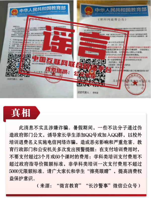 杜撰虚假信息,贩卖教育焦虑。7月暑假期间,不少培训机构为自身利益杜撰虚假信息,误导民众判断。如“教育部责令某校外培训机构退费”“培训3天就能拿到‘高考志愿规划师’证书上岗”“沈阳成立‘补课纠察队’”等假信息,不仅令学生家长财产受损,而且严重损害有关部门公信力。还有一些自媒体和营销号为博关注,恶意炒作“暑假不规划,开学差距大”“不怕同学是学霸,就怕学霸过暑假”等言论,有意制造教育焦虑,以“关爱孩子”之名、行“恐吓营销”之实。