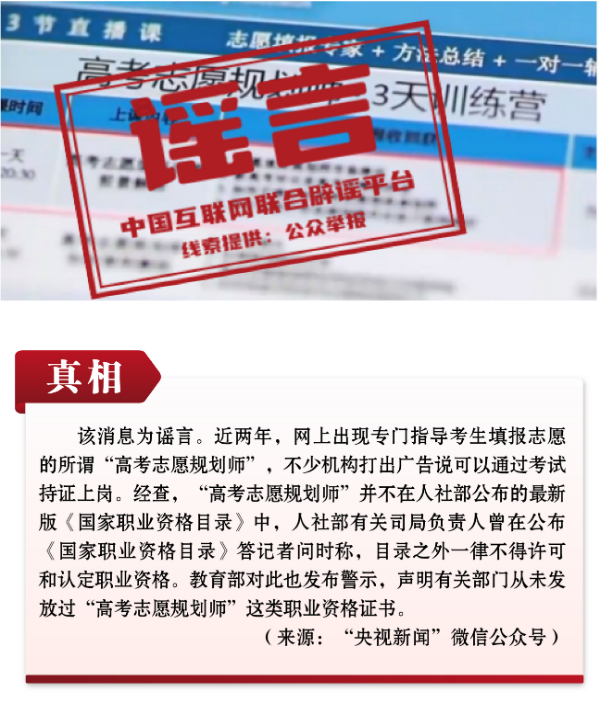 谣言3:培训3天就能拿到“高考志愿规划师”证书上岗?