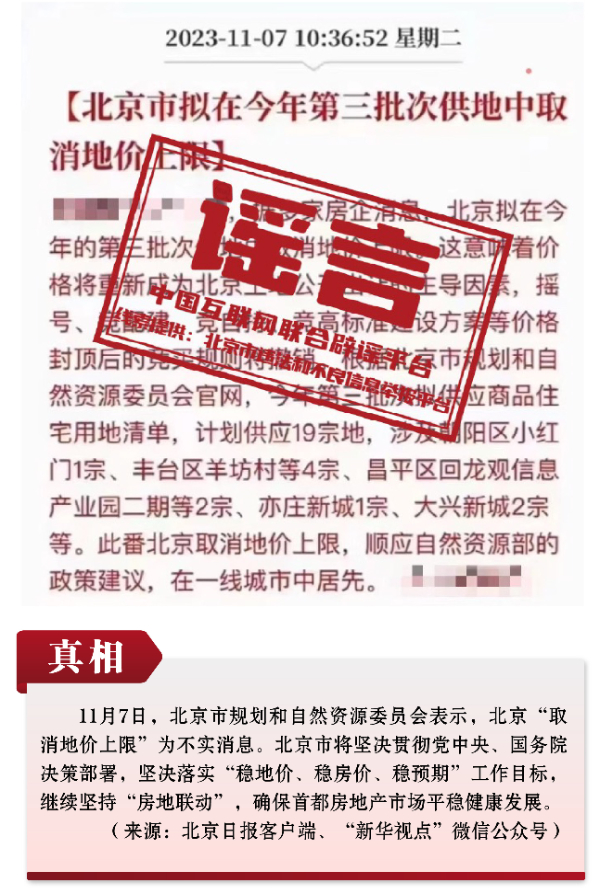 - 打击网络谣言 共建清朗家园 中国互联网联合辟谣平台2023年11月辟谣榜