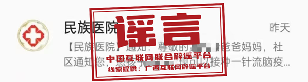 谣言:广西壮族自治区民族医院发布关于流脑疫苗接种通知?