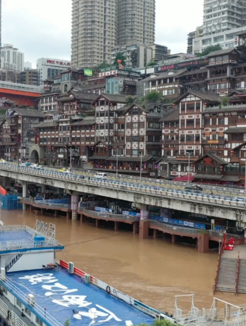 真相:近日,有网民发布视频称“40年最强洪峰过重庆,洪崖洞被淹”,引发关注。经重庆市渝中区交通运输委员会核实,该网传视频内容为谣言。今年7月12日洪峰过境,渝中最高水位181.16米,低于警戒水位,不存在洪崖洞被淹情况。网传视频系旧闻翻炒,其内容为2020年8月当地洪灾画面。(来源:@重庆辟谣)