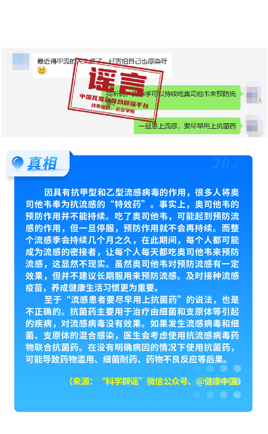 流感季可以持续吃奥司他韦来预防流感?流感患者要尽早用上抗菌药?