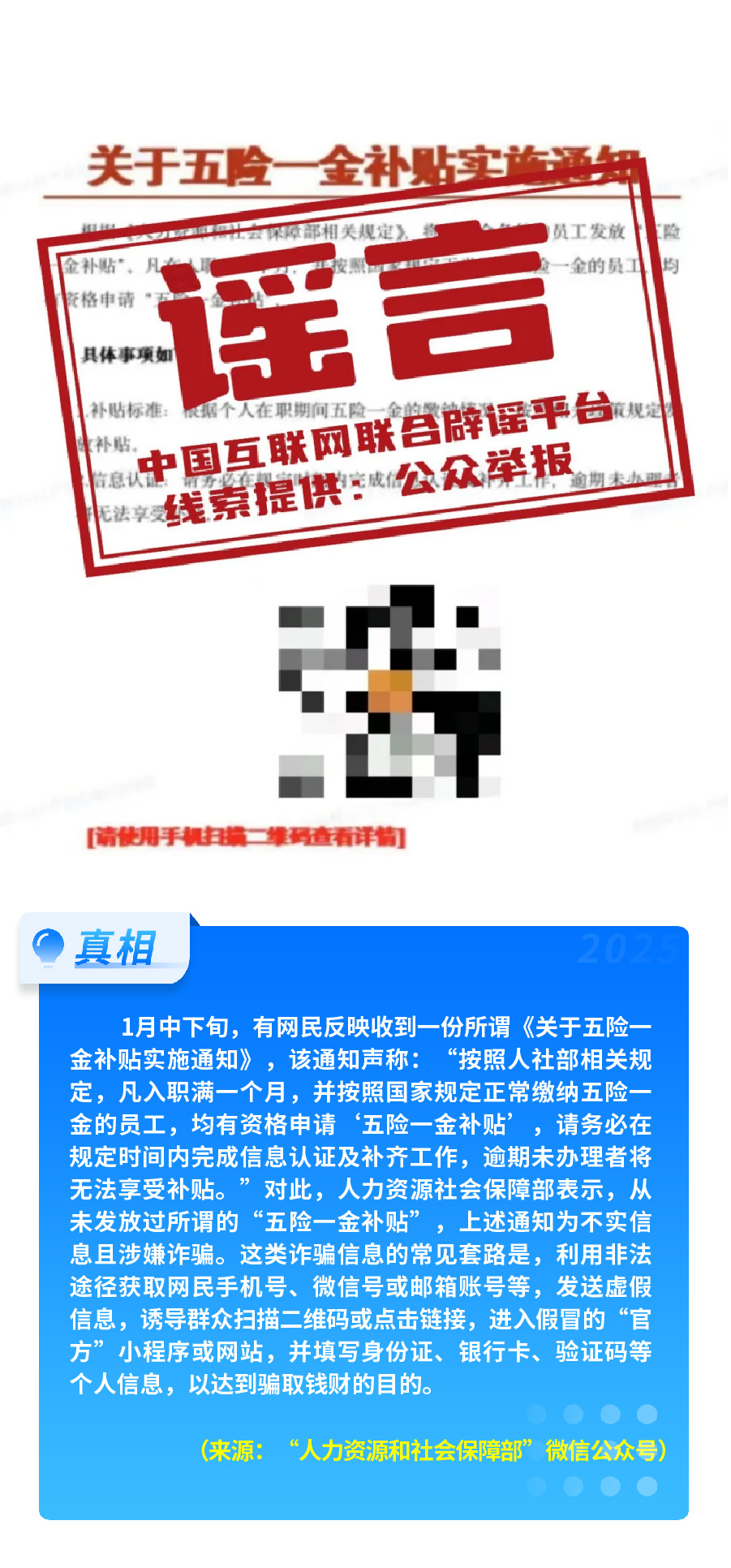 社会民生类虚假信息误导认知。一些不法分子假冒官方名义发布所谓“通知”“规定”,企图达到行骗牟利的目的。如有人假冒人社部门发布“关于五险一金补贴实施通知”,实质上是诱导群众扫描二维码,进入假冒的“官方”小程序或网站,进而骗取个人信息,伺机不法获利。又如,“成都地铁招聘提前预定名额”“济南地铁校园招聘有‘真题’”等消息,实为不法中介和培训机构以“预定名额”“保通过率”为噱头发布的虚假宣传,目的是借此名义骗取应聘者培训费、活动费等。更为恶劣的是,有居心叵测之人炮制“南京献血车开进中小学校园”谣言,将南京林业大学组织献血的照片“张冠李戴”为南京某中小学,意图煽动情绪、制造矛盾。