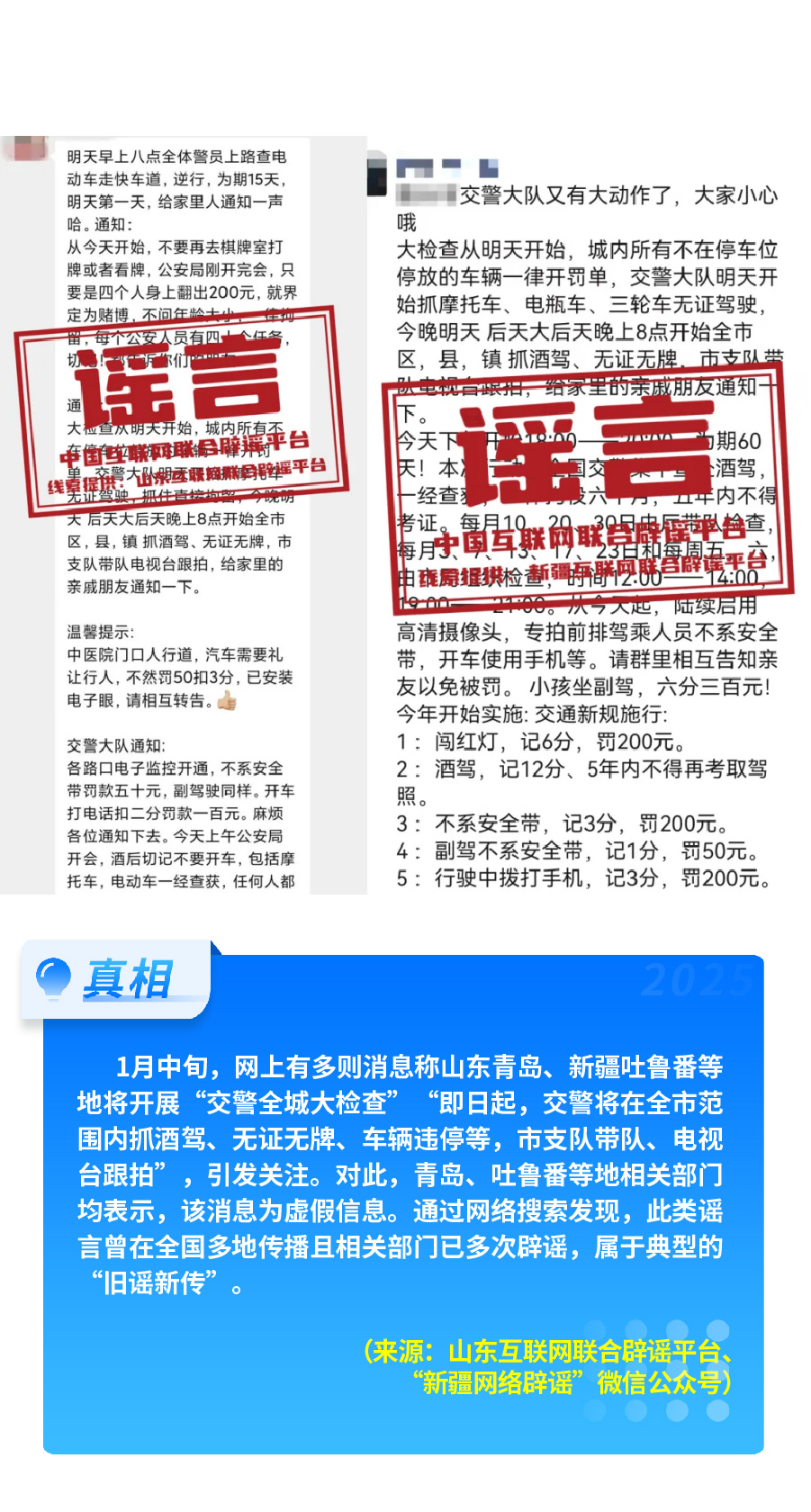 打击网络谣言 共建清朗家园 中国互联网联合辟谣平台2025年1月辟谣榜